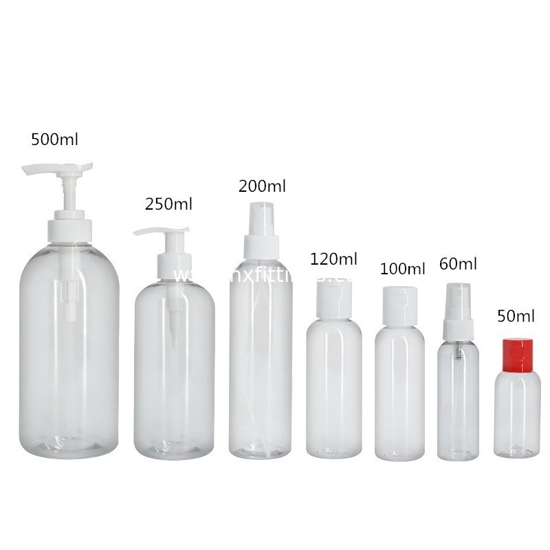 | درپوش ها | بطری PET را می توان با درپوش پیچی، درپوش چرخشی، اسپری مه پاش، پمپ، پمپ لوسیون، اسپری ماشه ای، پمپ فوم ست کرد. |