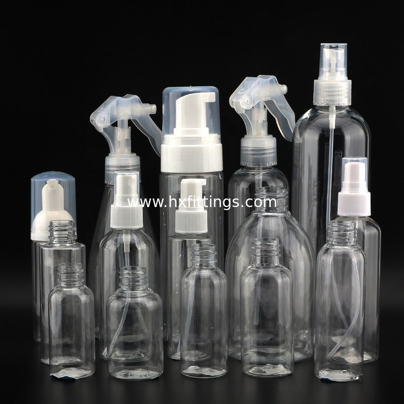| درپوش ها | بطری PET را می توان با درپوش پیچی، درپوش چرخشی، اسپری مه پاش، پمپ، پمپ لوسیون، اسپری ماشه ای، پمپ فوم مطابقت داد. |